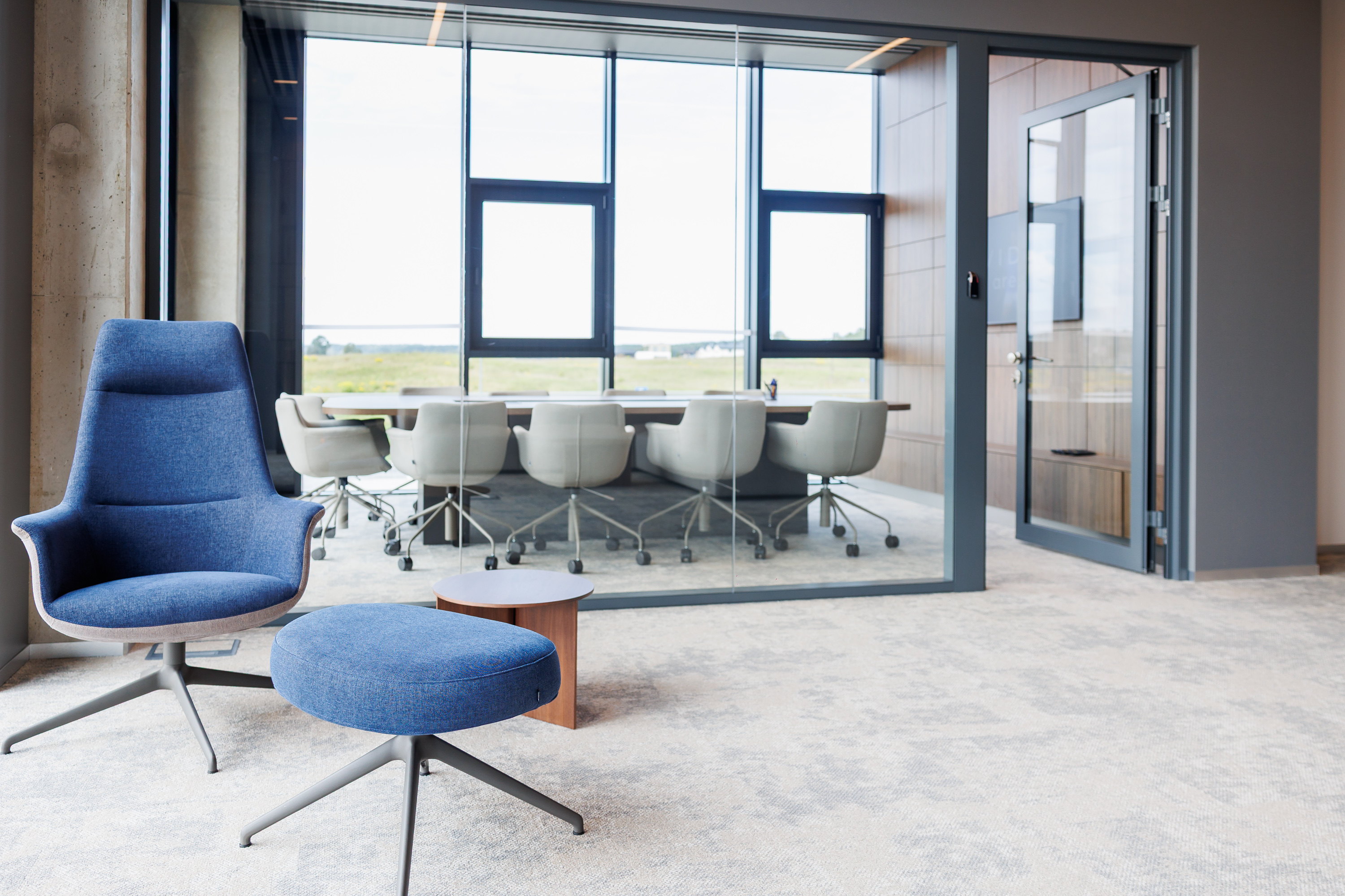 🏢 Aplinka pritaikyta conference room principu – moderni, rami, orientuota į dėmesio koncentraciją.